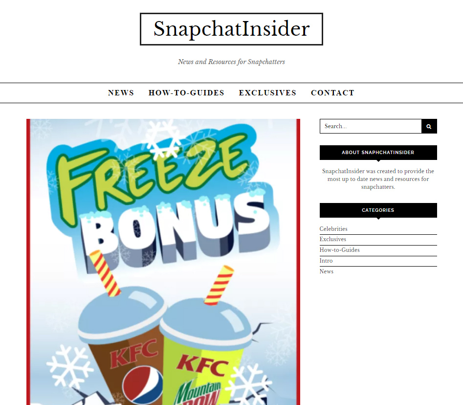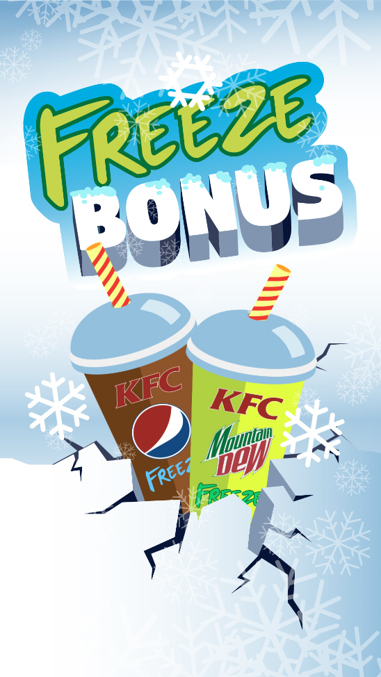 Occasionally, a customer would order both frozen drinks (the Pepsi Freeze and the Mountain Dew Freeze). When that customer was served, the players earned a "freeze bonus", which froze the clock for 10 seconds. When the game was over, players were awarded an exclusive KFC branded filter for Snapchat.