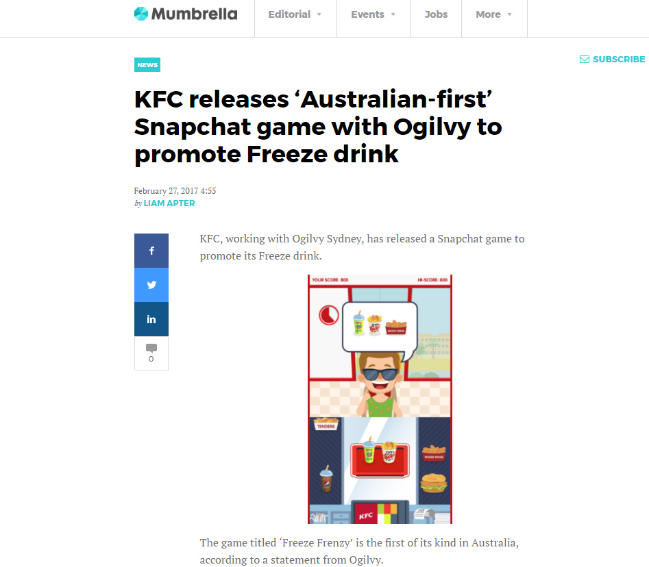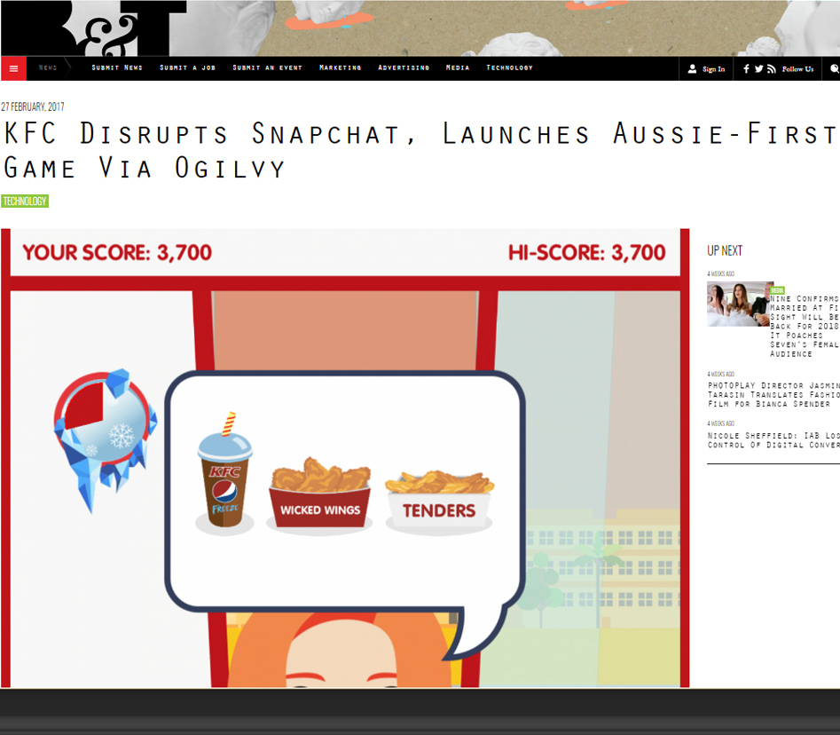 When KFC introduced frozen drinks to their drinks menu we wanted customers to know about it. Specifically young people and millenials, so we decided to get their attention by building a game for Snapchat.