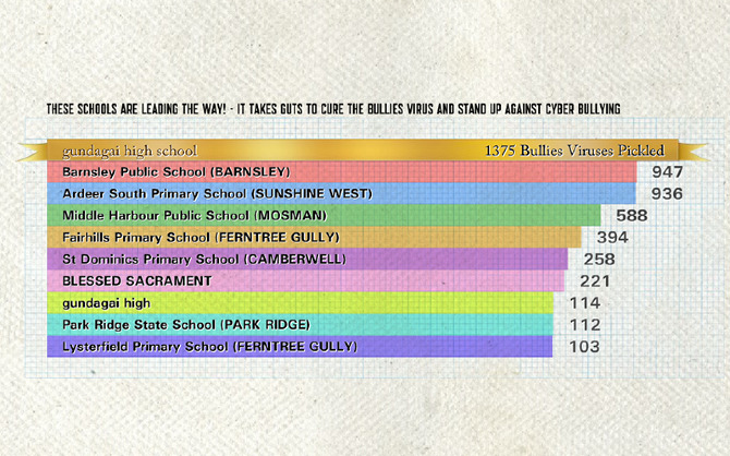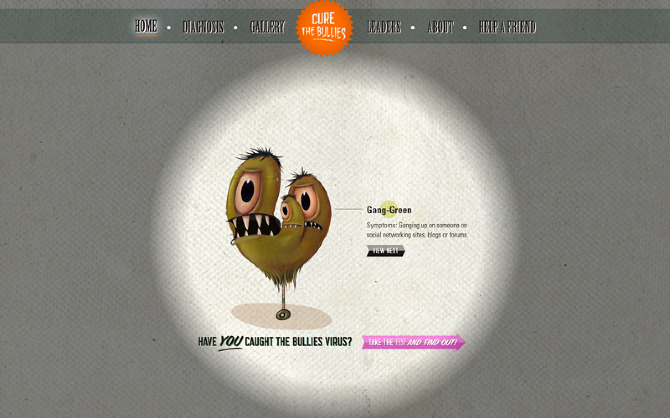 Cure the Bullies was a campaign launched for the combined partnership of the Vodafone Foundation and School Aid. Its purpose was to raise awareness of cyber bulling by transforming the topic into a cartoon-like setting and narrative, staged within an online environment. This allowed kids to learn, play, and interact with the campaign through a dedicated website.