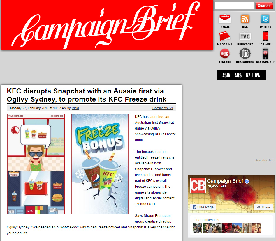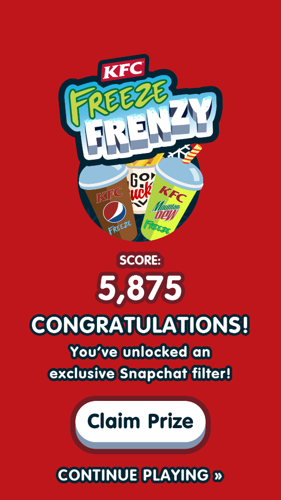 When KFC introduced frozen drinks to their drinks menu we wanted customers to know about it. Specifically young people and millenials, so we decided to get their attention by building a game for Snapchat.
